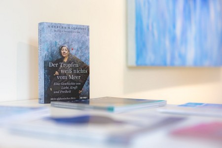 Die international renommierte afghanisch-deutsche Autorin und Künstlerin Mahbuba Maqsoodi liest im Rahmen der Ausstellung „Mahbuba Maqsoodi | glaubhaft“ aus ihrem autobiografischen Buch „Der Tropfen weiß nichts vom Meer“.